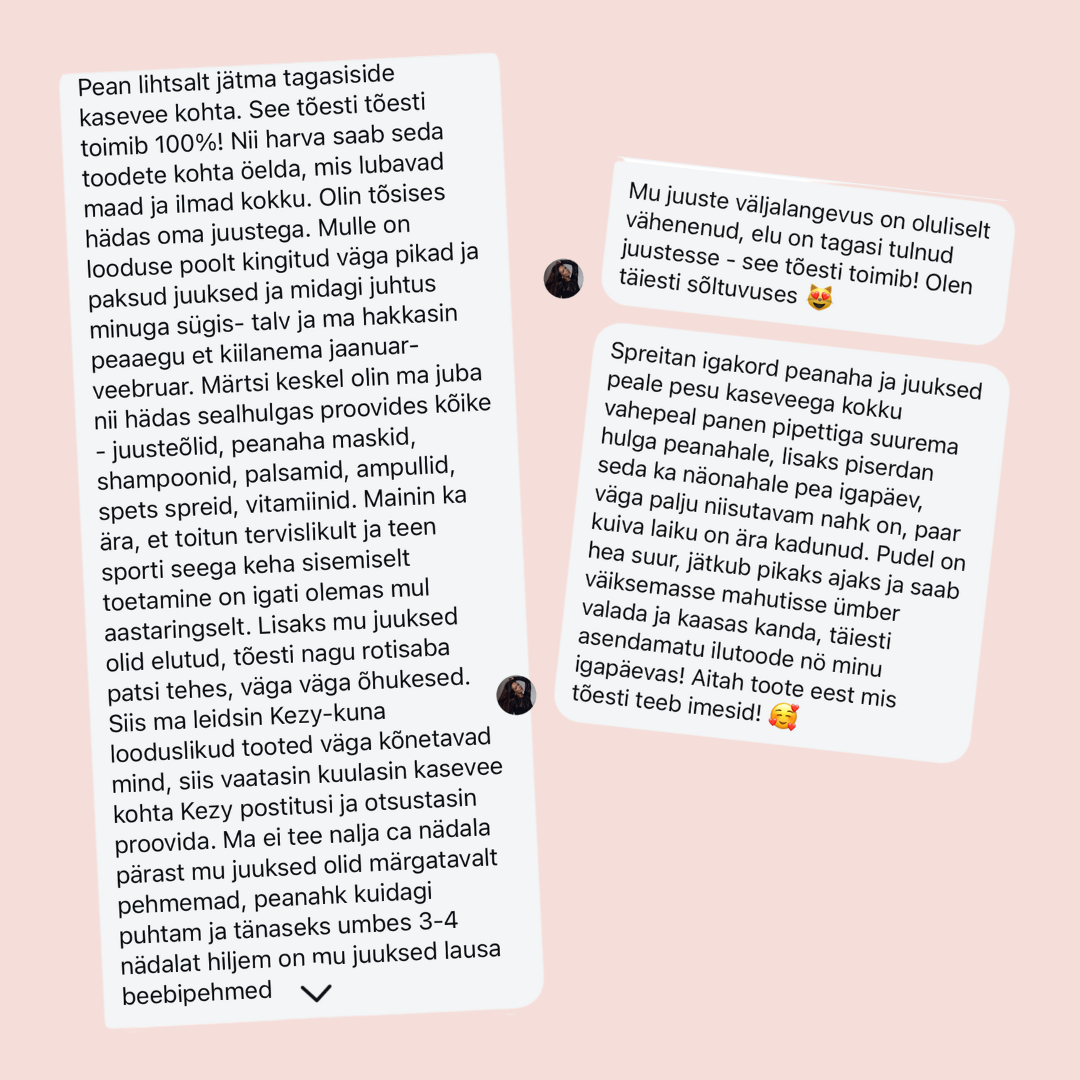 Parim looduslik toode mida olen kasutanud juuksed on tugevad ja näonahk on pehme juba teise pudeli kasutamise järel. Tellisin endale ja seekors ka emale
