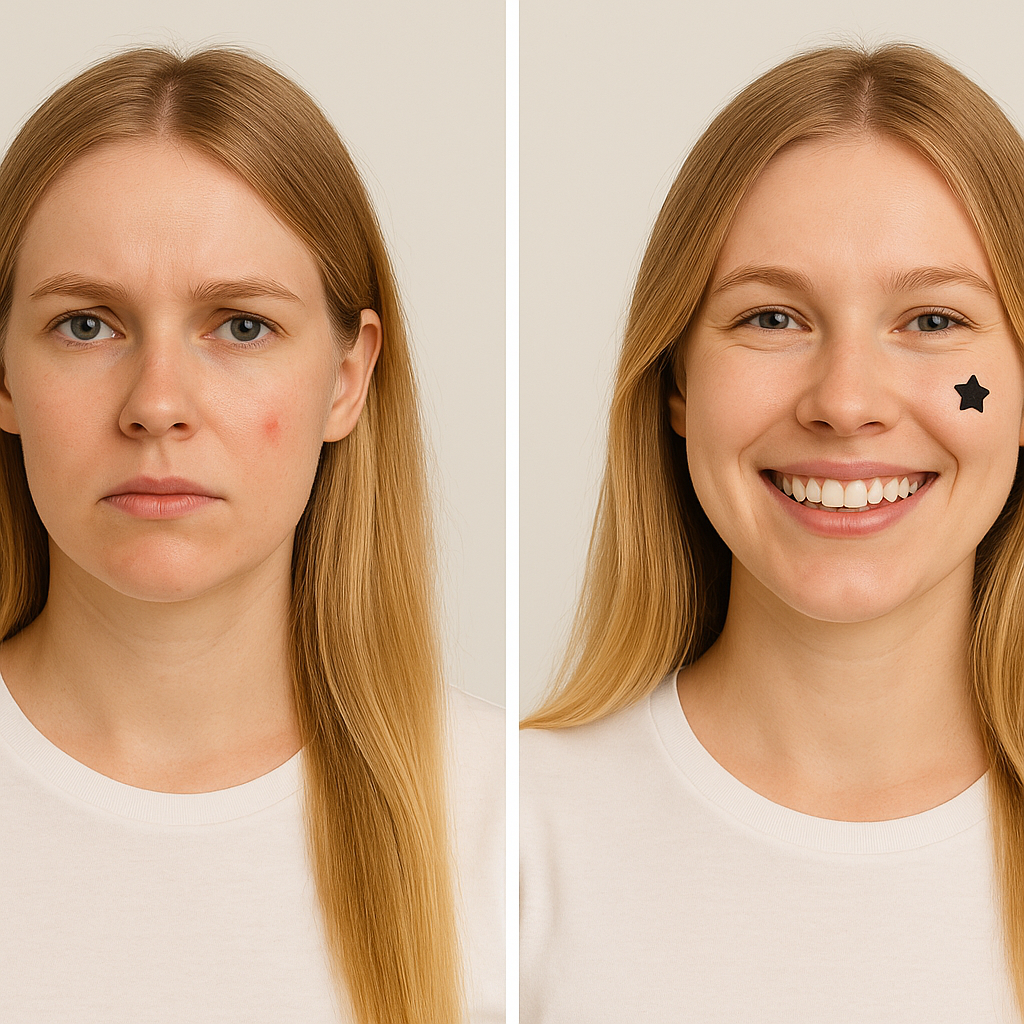 Armas ja tõhus tähekujuline plaaster. Väikesed “nurgakesed” aitavad ulatuda keerukatesse või ebamugavatesse kohtadesse, nagu nina nurk või huuleäär.